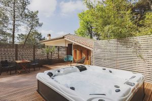 A 1 km du centre ville d’Hossegor et du lac, à 2km de l’océan, cette superbe villa de 150 m2 de standing avec spa affiche un style californien résolument unique au milieu des pins sur un terrain arboré de 1500 m2 ! La villa offre une vue époustouflante sur la Pinède, dispose d’un roof top avec spa californien de détente, énergisant et relaxant 6 places et d’une magnifique terrasse exposée sud équipée de toiles tendues et de meubles d’extérieurs pour